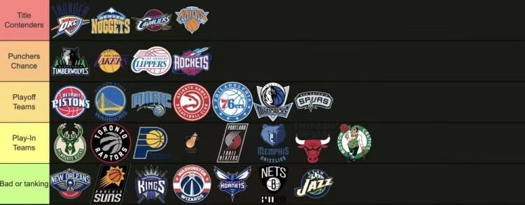 这一档是季后赛球队了,活塞、勇士、魔术、老鹰、76人、独行侠和马刺在这一档当中。马刺竟然比灰熊更被看好,也是让人意外,如果文班保持健康,依靠着他们这些天赋,球队确实有机会进入季后赛当中。老鹰和魔术在休赛期完成了很好的补强,他们或许有机会去撼动东部冠军的位置。