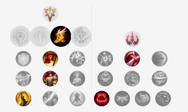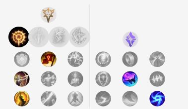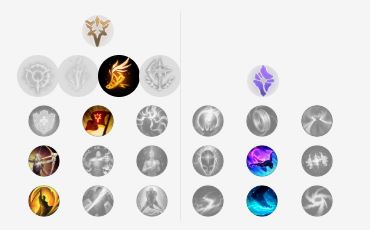 船长本身属于一个中后期发育英雄,E技能带有的无视效果让他可以不乏输出能力,而行窃预兆虽然看似和船长契合,实际上带上行窃预兆就会让前中期的床帐要么陷入必须与对手对拼或者少一个基石天赋的尴尬场面,所以我们将主系天赋选择为坚决,而副系天赋点出,对线消耗的法力流系带和焦灼。
